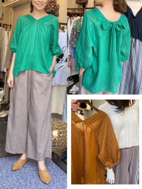 バックリボンブラウス¥12000💕 バッグリボンのブラウスはいかがでしょうか💚 フロントはシンプルなVネックにぬっております✨ カラーはグリーン、ブラウン、ホワイトの3色ですよ💕 現在無料で配送も行っておりますので、お気軽にお問い合わせください💕💕💕 バックリボンブラウス¥12000 2020年4月24日