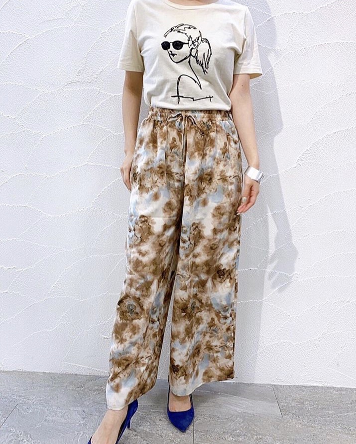 お家でリラックスウェア💕 シックな女の子刺繍のTシャツとお洒落なタイダイプリントのワイドパンツ のスタイルはいかがでしょうかーー? サラサラの着心地なので、お昼寝してても、急な宅急便屋さんの対応にもパパッと出られますよぉ〜💕 とにかくお洒落だから、気持ちも上がりますよん😃💕 どこにも行けないから、せめてお家でお洒落楽しんで下さいね💕💕💕 Tシャツ 8000円 ブラックもございます パンツ 13000円 送料無料でご配送させて頂きますので、ホームページお問い合わせより、ご注文をお待ちしております リコノクローシェ TEL 03-6421-3352 本日は雨の予想の為、12〜16時まで営業しております 2020年4月27日