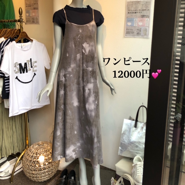 タイダイキャミワンピース💕 今期、急上昇のタイダイプリントのワンピースはいかがでしょうか? インナーにシンプルTシャツを合わせてスタイリングしてみました💕 とろみ感のあるカットソー素材で、汗をかいてもサラッと着ていただけます お家でごろごろしても、楽チンで可愛い😍 気分が上がるコーデですよん💕💕💕😃 ワンピース 12000円💕 2020年4月27日