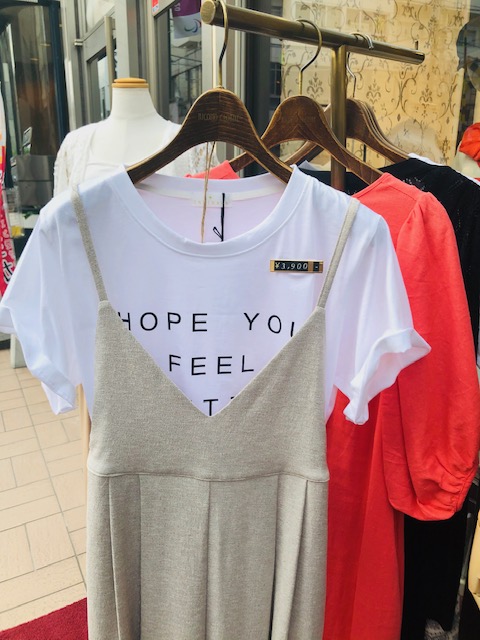 英字白Tシャツ 3900円💕 シンプルな英字のデザインがお洒落な白のTシャツを一枚いかがでしょうか? どんなアイテムにもしっくり合うから、何だかこればかり着てしまう💕 そんな1着です😍 ブルゾンなどの羽織りもののインナーにも程よいアクセントでスタイリングがキマりますよーー 2020年5月31日