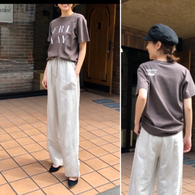英字Tシャツ❎リネン混紡ワイドパンツ フロントのデザインに加えて、バックスタイルにもプリントが入ったTシャツが到着しました💕 クオリティの高い素材なので、カジュアルでもしなやかで女っぷりが上がりそう💕💕💕 毎日着るものだからこそ、人とかぶらない、上質なテイシャツをぜひいかがでしょう? Tシャツ 6800円⭐️ パンツ 11000円⭐️ 2020年5月2日
