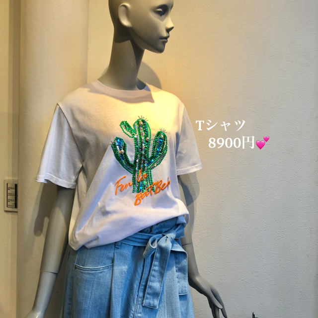 サボテン🌵Tシャツ8900円💕 スタンダードなTシャツの形に、お洒落なサボテンをキラキラビジューでデザインした、とってもお洒落なTシャツはいかがでしょう? これ一枚あれば、この夏のお出掛けはバッチリ決まりましょう⭐️⭐️⭐️ 気持ちも明るくなりそうなウキウキのTシャツですよぉ〜 2020年5月2日