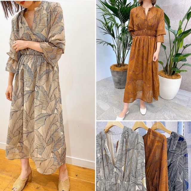 リーフ柄ワンピース💕10%オフ🎉 大人気のキーネックデザインワンピースのリーフ柄が再入荷致しました💕 お袖を肘まで上げて、真夏も一枚で着られます😍 ワンピースは一枚でサラリと着たいですもんね💕 シワになりにくい上質で速乾のポリエステル素材なので、一年中大活躍しますよぉ 無地のブラック、ロイヤルブルー、キャメルも入荷しております💕 ブログを見てご注文のお客様に10%オフさせて頂きます💕 リーフ柄ワンピース 16000円→14400円😍 2020年5月3日