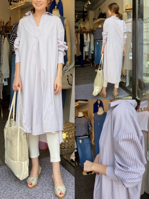 シャツワンピース¥4900💕パンツ¥4900💕 ゆったりシルエットのシャツワンピースはいかがでしょうか✨ パターン違いのストライプがおしゃれですね☺️ 只今無料で配送も行っておりますので、お気軽にお問い合わせ下さいませ💕💕💕 シャツワンピース¥4900 パンツ¥4900 バッグ¥5900 サンダル¥13000 2020年5月3日
