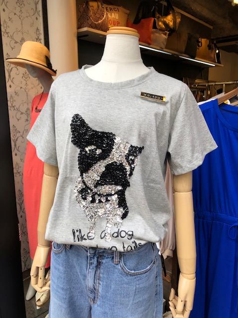 新作のワンチャンTシャツ💕 とぼけた表情が可愛いワンチャンTシャツが到着しました💕 白とグレーの2カラーとなっております💕 本日はTシャツを2枚お買い上げのお客様に10%オフさせて頂きます😃💕 ご配送も承りますので、ぜひこの機会にTシャツ選ばれて下さいませーー ワンチャンビジューTシャツ 6400円💕 2020年5月10日