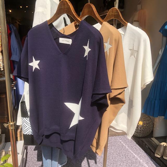 星のニット 12000円💕 コットン100%の上質なニットはいかがでしょうか? スッキリしたVネックのニットがなかなか少ないので、貴重な一枚です💕⭐️ 白、ネイビー、キャメルの3カラーで展開しております 送料無料でご配送させていただきます💕 素材 綿100% ホームクリーニング OK🙆♀️ 2020年5月13日