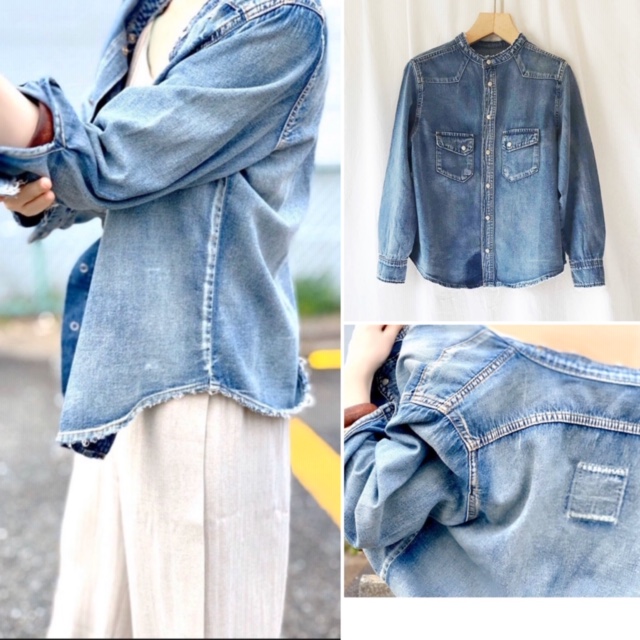 コットンデニムシャツ💕9800円 ヴィンテージ調ウォッシュをかけた夏のコットンシャツがおススメです💕 洗ってもごわつかず、風合いが変わりません😃 サマードレスの羽織りものとしても便利な一枚です💕 こなれ感のあるお洒落なシャツです 2020年5月14日
