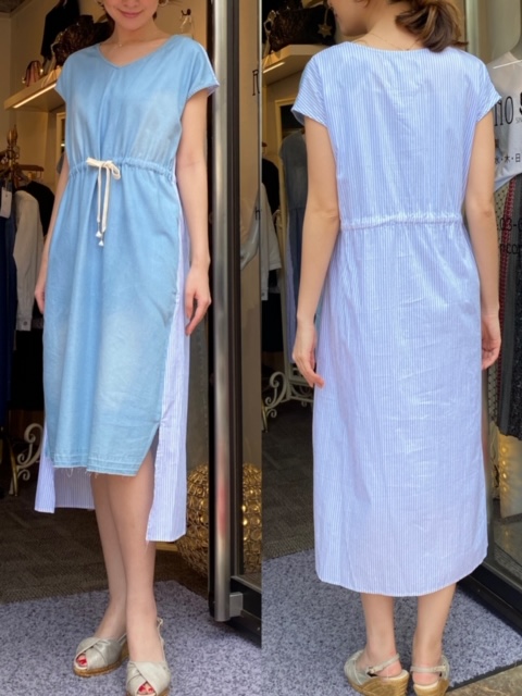 切り替えワンピース¥11800💕 デニムとストライプの切り替えワンピースはいかがでしょうか💕 ワンピースとしてもチュニックとしても着られる一枚です✨ ウエスト部分を絞れるのでシルエットも綺麗です😊 切り替えワンピース¥11800 2020年5月16日