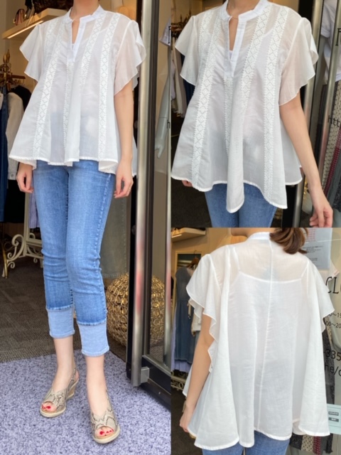 レースデザインブラウス¥11500✨デニムパンツ¥11800✨ 上品で涼しげなブラウスに細身のジーンズを合わせた爽やかスタイル😊🌻 ・ 透け感のあるブラウスは見た目にも涼しげでおすすめですよ💕💕 レースデザインブラウス¥11500 デニムパンツ¥11800 サンダル¥9500 2020年5月19日
