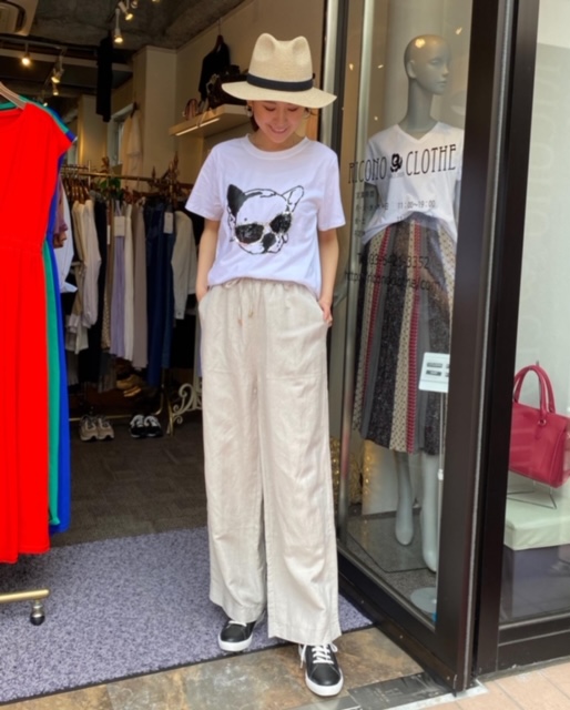 ワンちゃんTシャツ¥6400✨パンツ¥11000✨ 大人気のワンちゃんビジューTシャツが入荷しております😊✨ コーデのポイントになりますよ💕 ウエストゴムとリネン混の素材でリラックス感のあるワイドパンツもおすすめです😊❣️ ワンちゃんTシャツ¥6400 パンツ¥11000 2020年5月19日