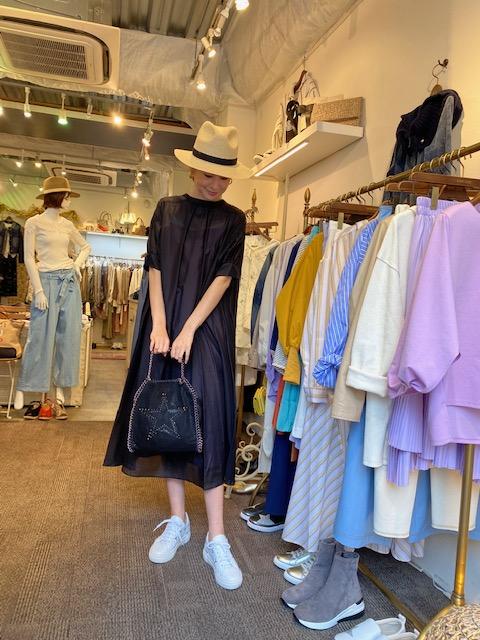 ワンピース 14000円💕 上質なコットンボイル素材のワンピースが再入荷しました💕 インナーキャミワンピースも付いていて、透けないので安心です シンプルで着やすい形も人気です😃 ラベンダーパープルのカラーも入荷しました💕 ワンピース 14000円 帽子 5900円 スニーカー 13800円 2020年5月19日