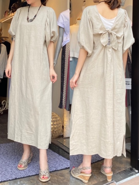 バックシャンなリネンとレーヨン混紡ワンピース😊💕