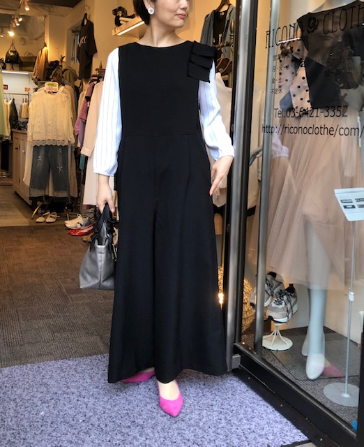 オールインワン 8900円💕 麻調のポリエステル素材のオールインワン💕が入荷しました😍 アシンメトリーに配置された肩のフリンジがアクセント⭐️ インナーの合わせ方で、長いシーズンお使いいただけます 夏はタンクトップで合わせても素敵です 2020年5月22日