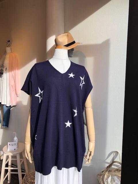 星ニット 13000円💕ウォッシャブル💕 コットン100%のとっても着やすいサマーニットチュニックです💕 これさえあれば、旬の着こなしが一瞬でできちゃう、万能アイテムです。 ネイビーとブラックの2カラーがございます 2020年5月25日