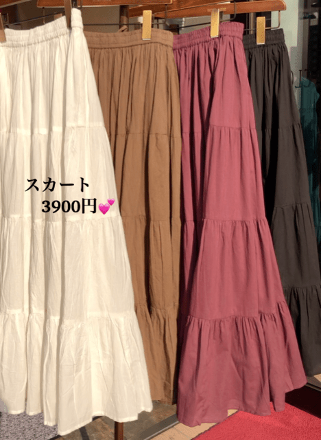 コットンティアードスカート 💕3900円 たっぷりとしたコットンボイルの生地が高級感を醸し出してくれるティアードスカートはいかがでしょうか? 秋までお使いいただけるシックなボルドーやブラックに加えて、夏のホワイトやブラウンも素敵です😃🙌💕 こんなプチプラなら、2色買いも良いですね🎀 2020年5月27日