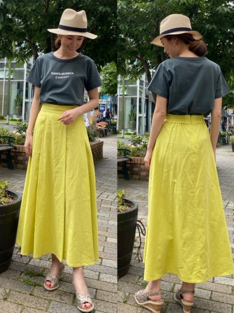 ロゴTシャツ¥4900✨フレアスカート¥12960✨ ロゴTに麻混フレアスカート🌻 麻ならではの素材感が夏らしいイエローのスカートは、履き心地も抜群です😊💕 一部スリットも入っており、裾捌きも良いですよ✨✨ ロゴTシャツ¥4900 フレアスカート¥12960 2020年6月1日