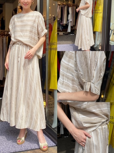 トップス¥8900🌻スカート¥11000🌻 涼しげで爽やかなセットアップはいかがでしょうか💕 セットアップとして着ても、別々でも着回ししやすいアイテムです✨ ブラウスはお袖も長く、スカートはポケットもついていて嬉しいポイントが沢山です😊💕 【素材】レーヨン71%ナイロン16%麻13%(スカート裏地ポリエステル100%) トップス¥8900 スカート¥11000 2020年6月5日