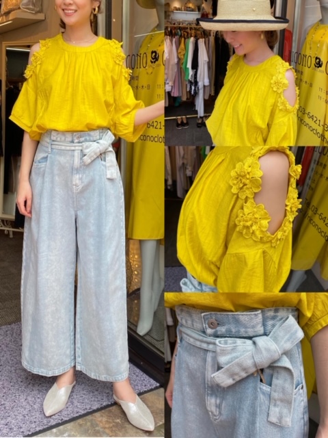 フラワーモチーフ肩あきトップス¥6900 ✨デニムパンツ¥148 00✨ とっても夏らしいトップスはいかがでしょうか🌻😊 カラーバリエーションも豊富で大変おすすめです❣️ こちらご予約商品となっておりますので、ホームページよりご注文を承ります。尚、入荷は6月下旬頃を予定しております✨ フラワーモチーフ肩あきトップス¥6900 デニムパンツ¥14800 2020年6月5日