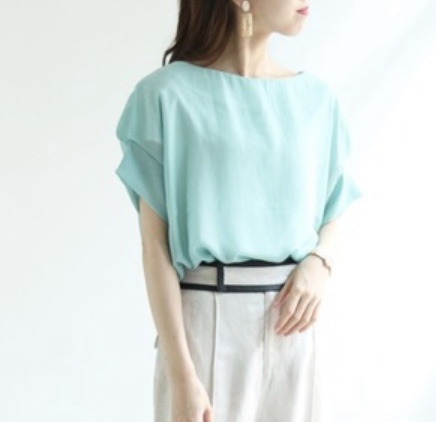 ミントカラーのトップス💕6900円 丸みのあるコンパクトフォルムが ミニマムな印象のブラウス💕 ハイウェストボトムと相性が良く オフィスにもぴったりです⭐️ 薄手のシアー素材とさらっとした手触りの素材との 2枚仕立てとなっています💕 より立体感がでてリッチな作りに😍 透けないので一枚で着用していただけます ミント、アイボリー 、ブラックの3カラーで12日に入荷予定です シフォン重ねトップス 6900円💕 2020年6月10日