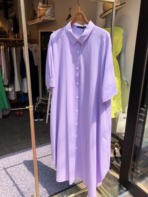 ラベンダーのシャツワンピース 💕 上質なコットン素材の半袖ワンピースはいかがでしょう? 薄手の軽いコットン素材なのでシワになりにくいです⭐️⭐️⭐️ Tシャツコーデの上に軽く羽織ったりも出来るスグレモノ💕💕💕 秋の立ち上がりまでヘビロテ出来そうです 2020年6月11日
