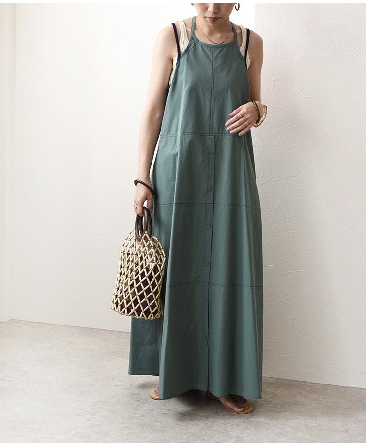 コットンのワンピース💕 重ね着で楽しむワンピースが到着しました💕 初夏から秋の立ち上がりまで、長いシーズンに着ていただけます💕 フロントのボタンを開けてバスト風に着こなすのもあり😊👌 グリーンの他に黒もございます ワンピース 9800円 2020年6月12日