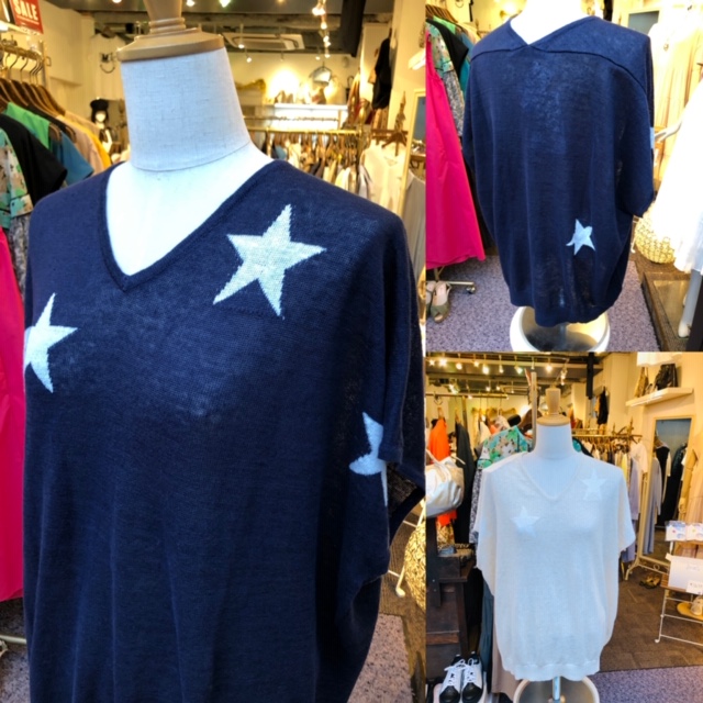 フランス🇫🇷リネンの星ニット💕 とってもソフトなフランスリネンの糸で編まれた、星デザインニットが到着しました💕💕💕 今週の特価品⭐️⭐️⭐️として、ブログを見てご来店の方限定で20%オフ😆にて販売させて頂きます💕 ホームクリーニングOK💕 チクチクしない、上質な着心地💕 星リネンのサマーニット 6900円→5520円😆 アイボリーとネイビーの2カラーとなっております 2020年6月13日