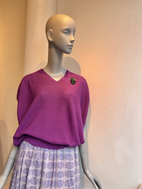 パープルのサマーニット💕 日本製ホールガーメントの上質なニットが到着しました💕 毛羽立ちにくい加工&爽やかなシャリ感のある夏素材です💕 上質な質感と涼しさをどちらも兼ね備えたニットです アイボリー、サックスブルー 、ブラック、パープル、ベージュで入荷いたしましたーーー ニット 6900円 💕💕💕 2020年6月14日