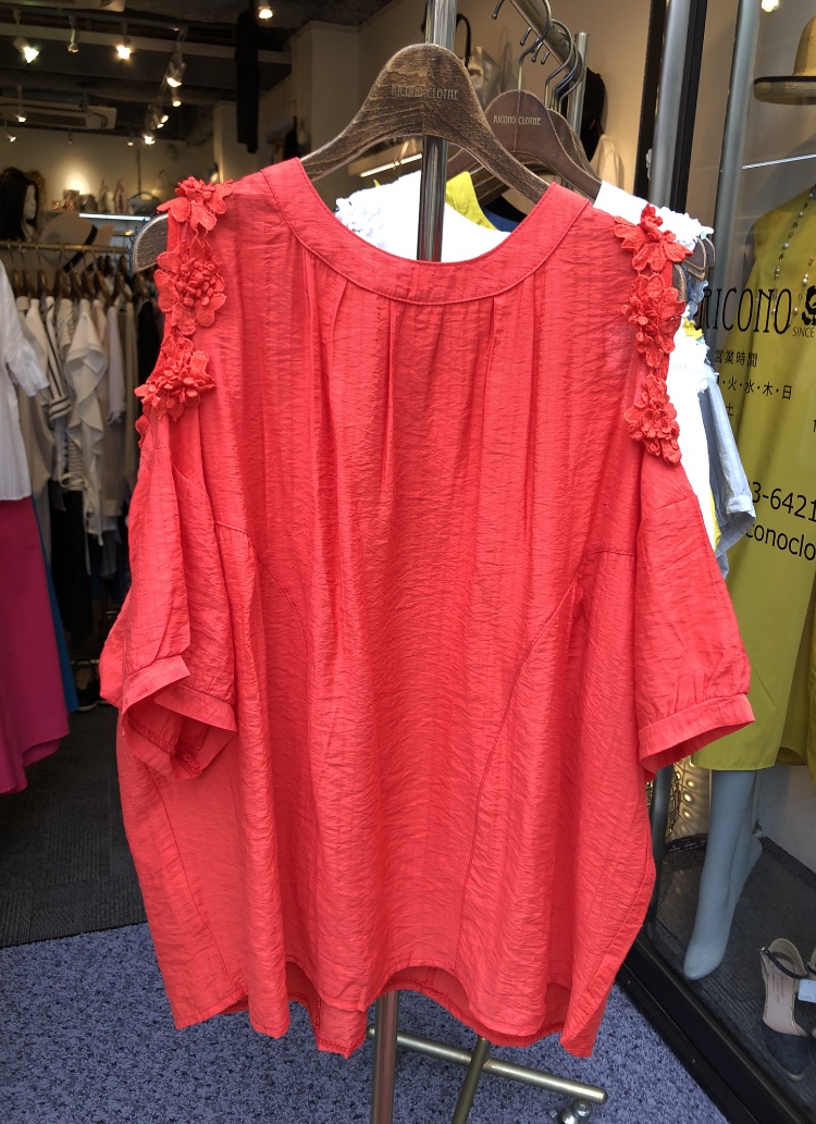 二の腕の外側だけ抜けた、肌見せ感のある華やかなブラウスです💕
