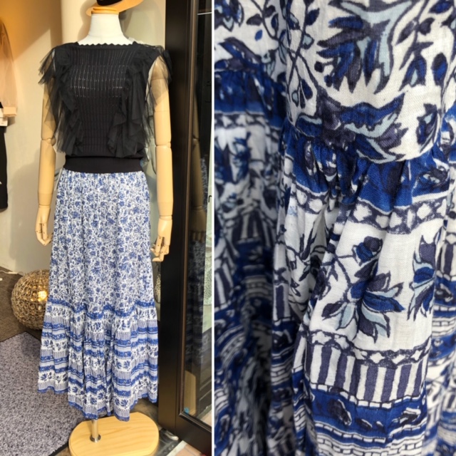 爽やかなブルー系の花柄ティアードスカートが到着しました💕
