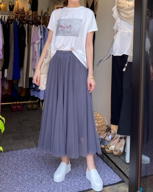 チュールスカートは、Tシャツやスリッポンを合わせることでカジュアルにも着ていただけます😊✨