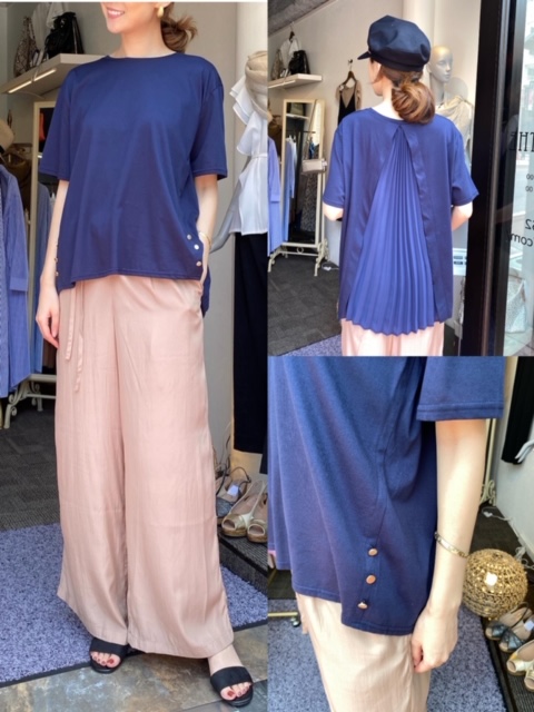 バックプリーツのカットソーに、リラックス感のあるパンツを合わせてみましたー💕