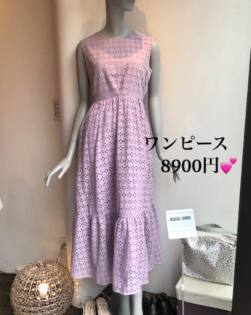 コットンレースのワンピース 8900円💕 爽やかなラベンダーピンクのコットンレースのワンピースが到着しました💕 お色違いは、ベージュとブラックがございます💕 本日は25アイテムの入荷ですーー 是非見にいらしてくださいねーー 2020年6月26日
