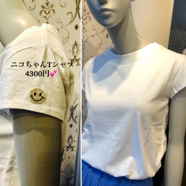 ニコちゃんTシャツ 4300円💕 可愛いニコちゃんのアップリケを付けたシンプルTシャツが入荷しました💕 リコノオリジナルのTシャツです お色違いはネイビー、ブラックです 大人可愛い😍着こなしにぜひいかがでしょう? 無くなり次第終了となります 2020年7月4日