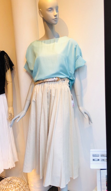 ミント❎ベージュ💕 爽やかなミントカラーのシフォントップスは、裏にカットソーがドッキングしているので、一枚で着られます💕 ベージュの麻調の軽いスカートを合わせて、爽やかな色合わせはいかがでしょうか? スカートは、ブルーグリーンとネイビーのお色違いもございます😃 トップス 6900円→5520円 スカート 7900円→6320円 2020年7月5日