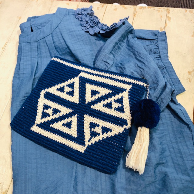 肩花レースブラウス💕6900円 珍しいブルーのデザインブラウスとモチラバックのブルーでコーディネートしてみました💕💕💕 ネイビーやホワイトのボトムスで思いっきり爽やかな着こなしを楽しみたい⭐️⭐️⭐️ バック 8000円 2020年7月8日