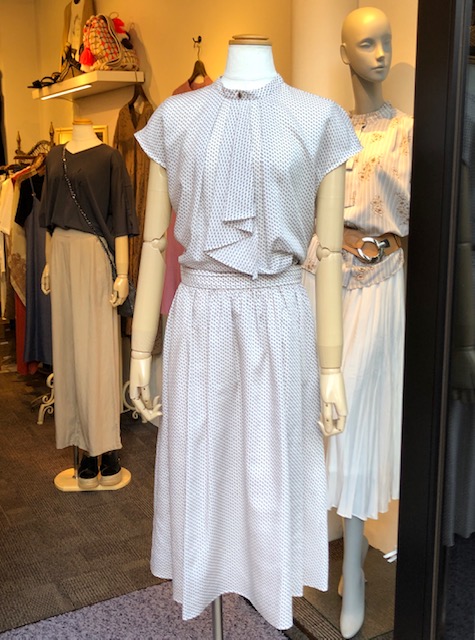 幾何学柄のセットアップ💕 made in JAPAN🇯🇵のブラウスのセットアップが入荷しました😃💕 いつも新品同様な風合いがキープされる上質な素材と縫製が人気の秘密です お色はお写真のオフ白❎ブラックとネイビー❎グリーンの柄がございます💕 明日は店休日ですので、金曜日より販売させて頂きます ウェストは、バックゴム仕様となっております💕 おサイズはS〜Mのおサイズとなっております ブラウス 9100円💕 スカート 10500円💕 2020年7月8日