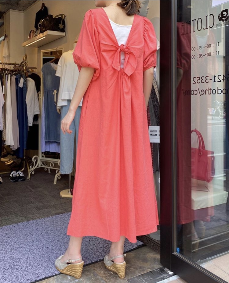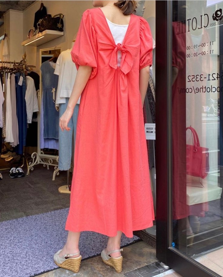 バックリボンワンピース💕 とにかく可愛いバックリボンのワンピースが再入荷致しました💕 綺麗なシャーベットオレンジが夏の日差しに映えそう💕💕💕 お色違いはブラックとベージュがございます ワンピース 11800円💕 SALE 9440円💕 各カラー ラスト一枚となりました😍 2020年7月9日