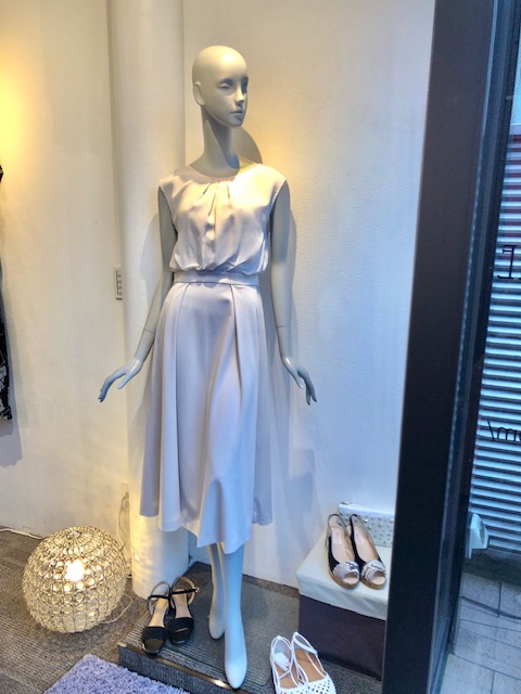 トップスがシフォン、スカートがストレッチ素材のお洒落なワンピースはいかがでしょうか?