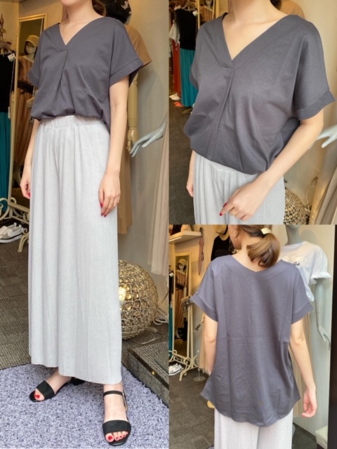 シンプルなVネックカットソーに、プリーツパンツ✨✨