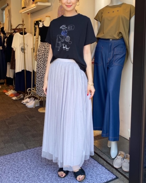 キュートなイラストTシャツに、ラメ感のあるチュールスカート💕💕