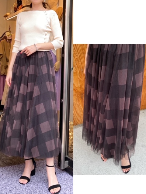 生地をたっぷりと使ったフレアシルエットがニュアンス満点のチュールスカート💕