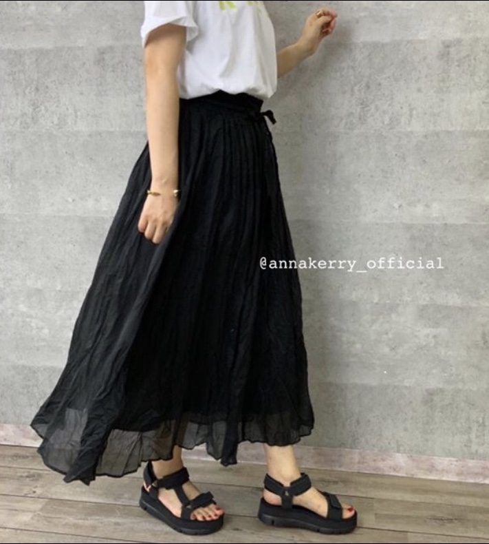 コットンボイルのスカート 5340円😍 爽やかでとっても涼しいコットンボイル素材のスカートは、ちょっと短めのミディ丈💕なので、足捌きが良く軽快な印象です 小柄さんにもオススメの1着 ブラックなら初秋まで楽しめそう モデル身長 152センチ 2020年8月7日
