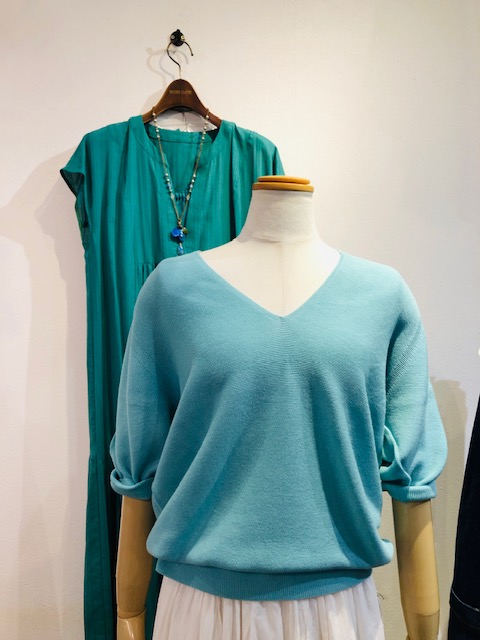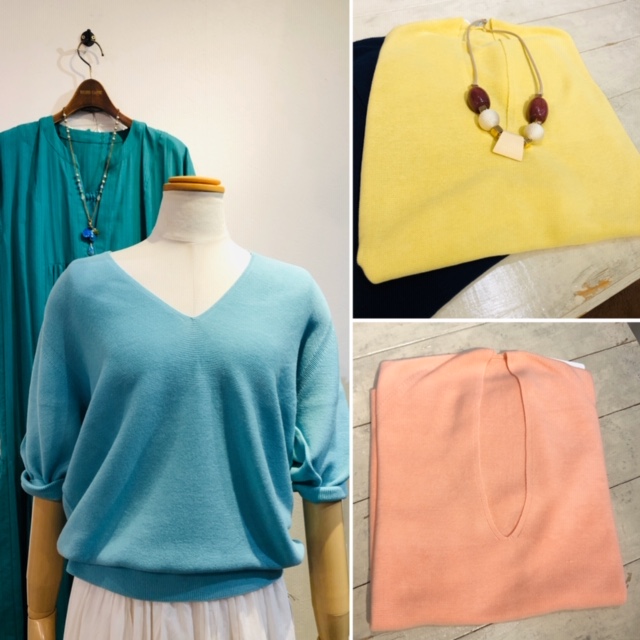サマーニット 40%オフ💕💕💕 大人気の日本製のサマーニットを探してまいりました😃 こちらは少し長めのお袖で、綺麗なブルーとシャーベットオレンジで到着しました⭐️ 一枚で着られて透けません⭐️ 気になる方はお早めにチェックくださいませ。 限定数のみの販売となっております💕 2020年8月9日