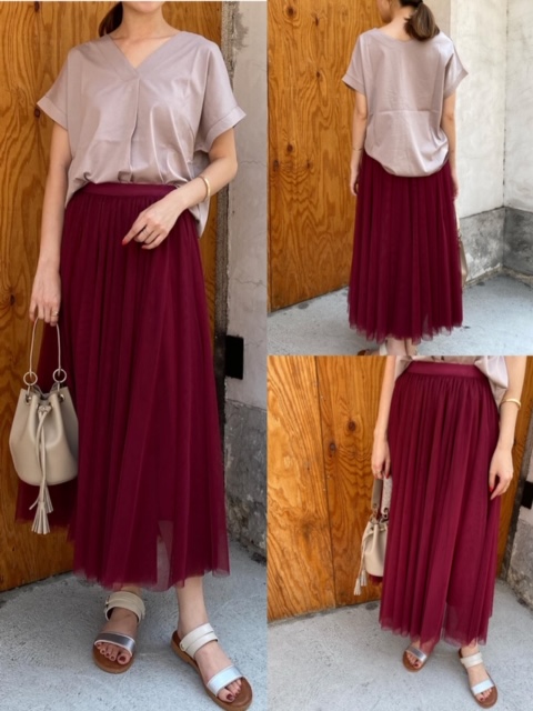 カットソー¥4130✨チュールスカート¥11000✨ 秋を先取りしたベージュ×ボルドーコーデ😊✨ チュールスカートはボルドーの他にブルーがございます🌈 当店のオンラインショップはこちら↓↓ https://riconoclothe.theshop.jp/ カットソー¥5900→¥4130 チュールスカート¥11000 2020年8月19日
