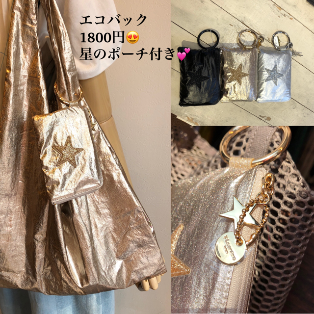 メタリック エコバック💕1800円⭐️ 超軽量の星ポーチ付きのエコバックが再入荷致しました💕 シャンパンゴールド、シルバー、ブラックの3カラーで展開しております お友達のプレゼントにも喜ばれそう💕💕💕 2020年8月19日
