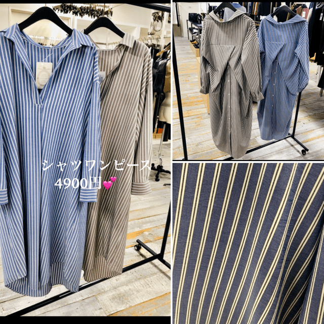 とろみワンピース💕4900円😍 秋一番のとろみシャツワンピースが到着しました💕抜け感のあるネックラインと、立体的なフォルムがお洒落なバックデザイン💕💕💕 ポリエステル素材でお手入れも楽チン⭐️⭐️⭐️ これから春まで大活躍しそうです モカとブルーの2カラーで入荷しております。 気になる方はお早めにチェックお願い申し上げます😍 2020年8月22日