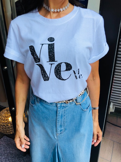 英字モチーフTシャツ 5900円💕 シンプルな丸首の大人カットソーに、かすれ風の文字がとってもお洒落なカットソーはいかがでしょうか? ジャケットインにもスッキリ決まりますよーーー Tシャツ 5900円💕 白にブルー文字、黒に白の文字もございます 2020年8月23日
