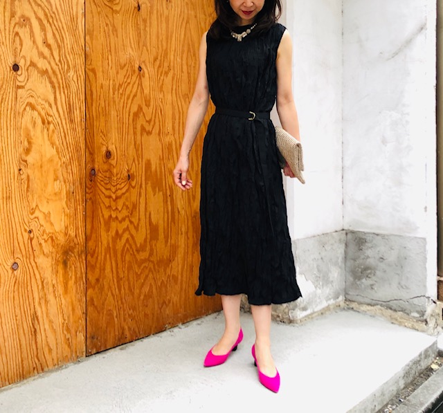 ワッシャー加工のワンピース💕 とっても軽いポリエステル素材のワンピースは、とにかくお役立ちなブラック💕 まだまだ暑い日々も続きますので、洗えてすぐ着られるワンピースは、忙しい貴女におススメです ウェストのベルトは外してラフに着てもGOOD⭐️⭐️⭐️ ラストサマーSALE ワンピース 16000円→11200円💕 パンプス 13000円 バック 7900円 2020年9月2日