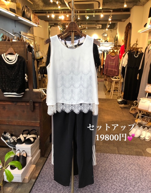 レースブラウスのセットアップ💕 裾からちらりと覗くレースがとっても素敵なセットアップが到着しました💕 少し短めの着丈のトップスは、スカートやワイドパンツ などにも絶妙なバランスでバッチリ合います⭐️😍 パンツはウェストゴムのデザインで、履き心地◎💕 おサイズは、S〜Mサイズとなっております お色違いは、上下ともブラックとなります 2020年9月2日
