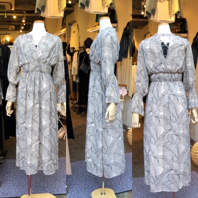 リーフプリントワンピース 💕 お洒落なリーフ柄のワンピースはいかがでしょう?💕 こちらのワンピース、お家でホームクリーニング出来て💕シワにならない⭐️⭐️⭐️ ウェストのゴムがとてもソフトで、軽ーくウェストをシェイプしてくれるから細見え効果もあります😍 シックなリーフ柄がかなりお洒落な一枚です😍 合わせるのにぴったりなライダースジャケットも入荷しました😍 さぁ、秋のお洒落をスタートいたしましょうーーーー 2020年9月12日